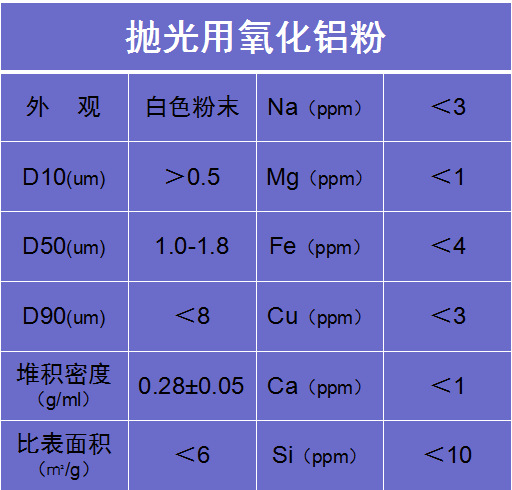 為迎合市場需求,采用獨特的生產(chǎn)工藝,利用國內(nèi)外先進(jìn)的生產(chǎn)設(shè)備,通過嚴(yán)謹(jǐn)?shù)纳a(chǎn)流程制作而成的納米氧化鋁拋光粉為高純度白色粉末,該產(chǎn)品具有以下優(yōu)越性能: