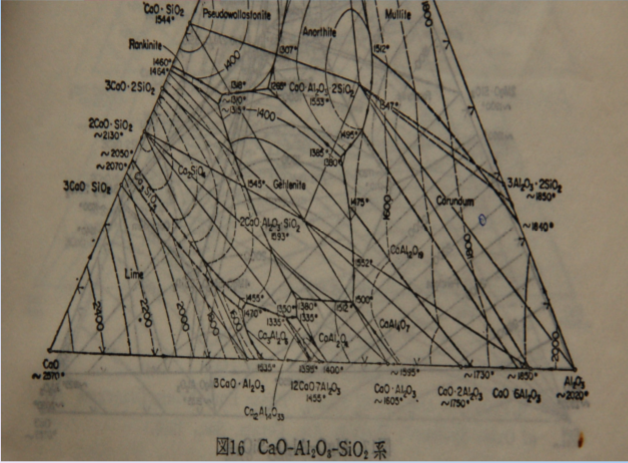 如上面的圖1所示,當(dāng)組份點在CA-CA2C2AS的三角形內(nèi)時,燒成溫度范圍比較寬,適合在回轉(zhuǎn)窯中煅燒。在平常條件 下,當(dāng)鋁礬土的品位A/S比在7以上,按GB201-2000生產(chǎn)CA-50中的G5、G6 、G7應(yīng)該問題不大,這一系列純鋁酸鈣水泥,主要用于傳統(tǒng)的耐火澆注料,使用溫度在1250℃以下,水泥用量在10-20%之間也有達(dá)到30%。